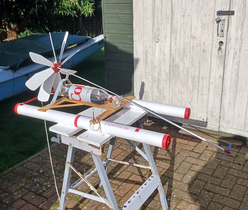 Tests were made with the 18 inch windmill rotary test model. A load of a brick with a weight of 2 kgs was easily carried even in light winds and a further verification test used a 2ltr bottle of soft drink to demonstrate that the weight was genuine.